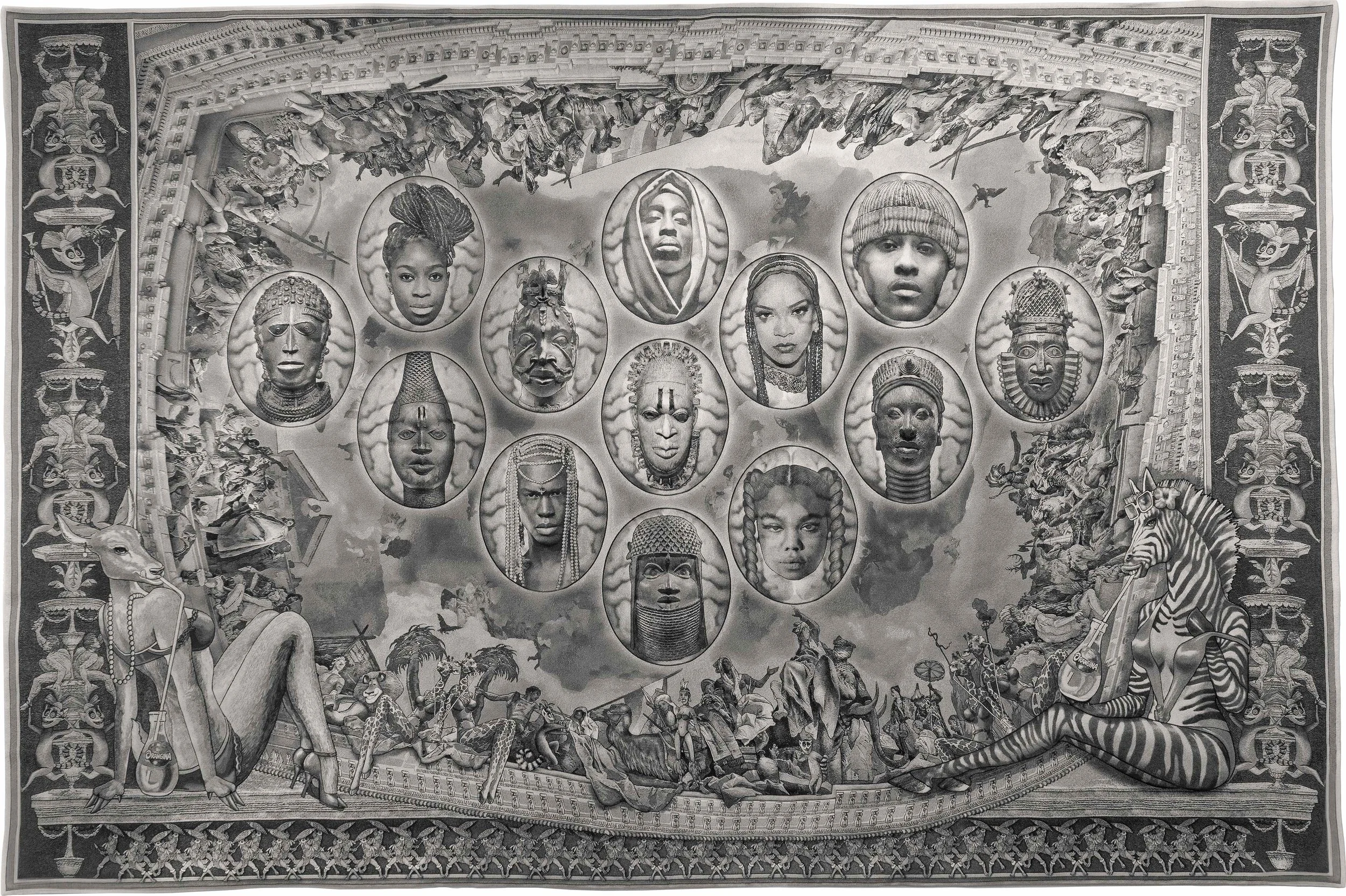 During a journey along the Loire I unexpectedly encountered the courtly tapestry, a pictorial form that closely relates to today's media images in terms of communication power and influence. My work focuses on the public image on the internet and the motifs that shape our view of the world. From these images, I create new narratives through digital collages, which are then woven in cooperation with a digital weaving mill - about 80 pieces in the last twenty years.
